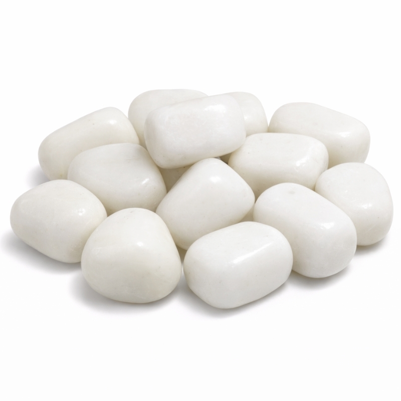 Hvid jade har en blød cremehvid farve med en let silkeagtig glans. Stenene er slebet og poleret, så de ligger behageligt i hånden, og hver enkelt sten har sit eget naturlige udtryk og nuance.