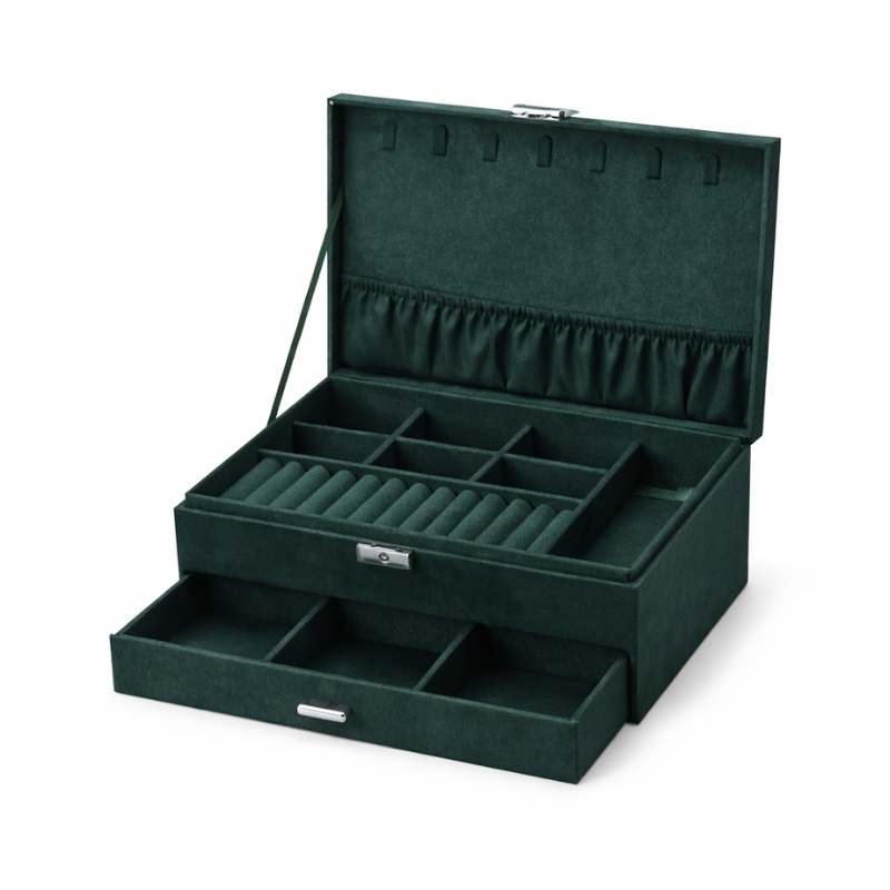 Stort grønt smykkeskrin med skuffe