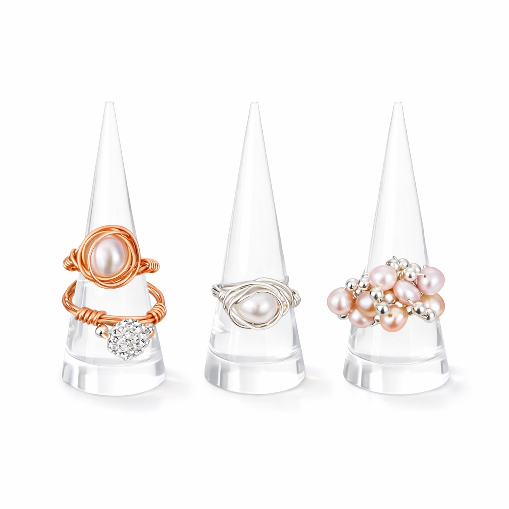 Inspiration til fingerringe lavet af viklet smykketråd og perler