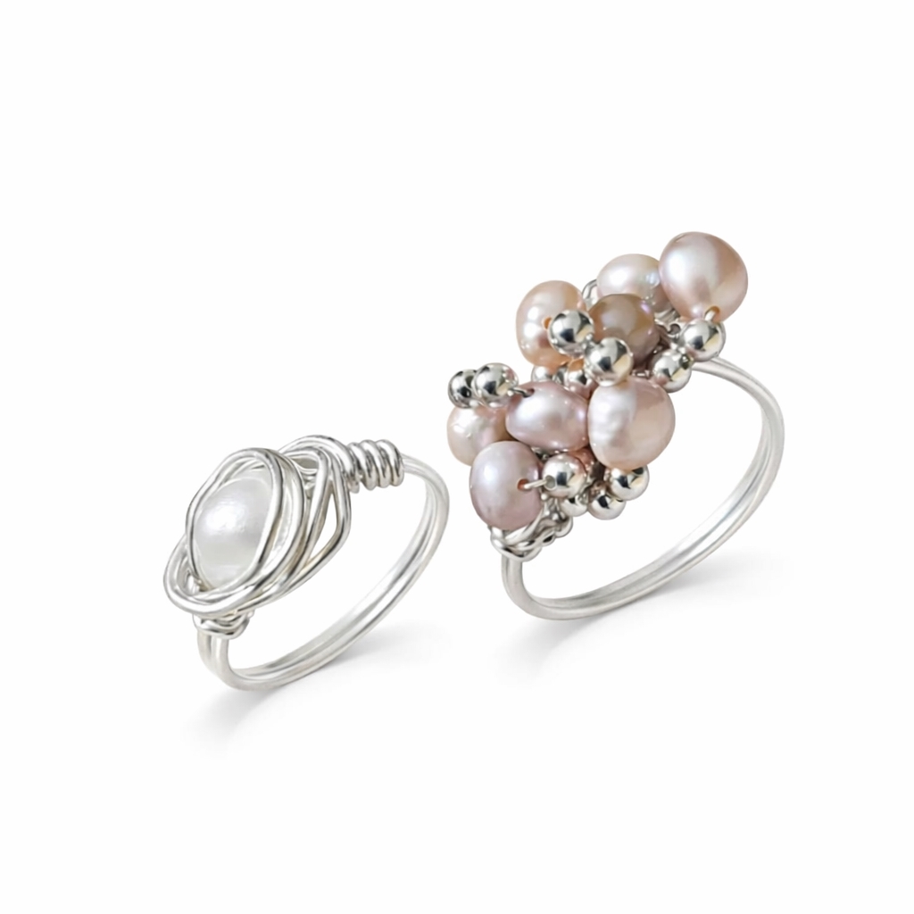 Wrapped ringe med perlerpå forsølvet og kobber tråd