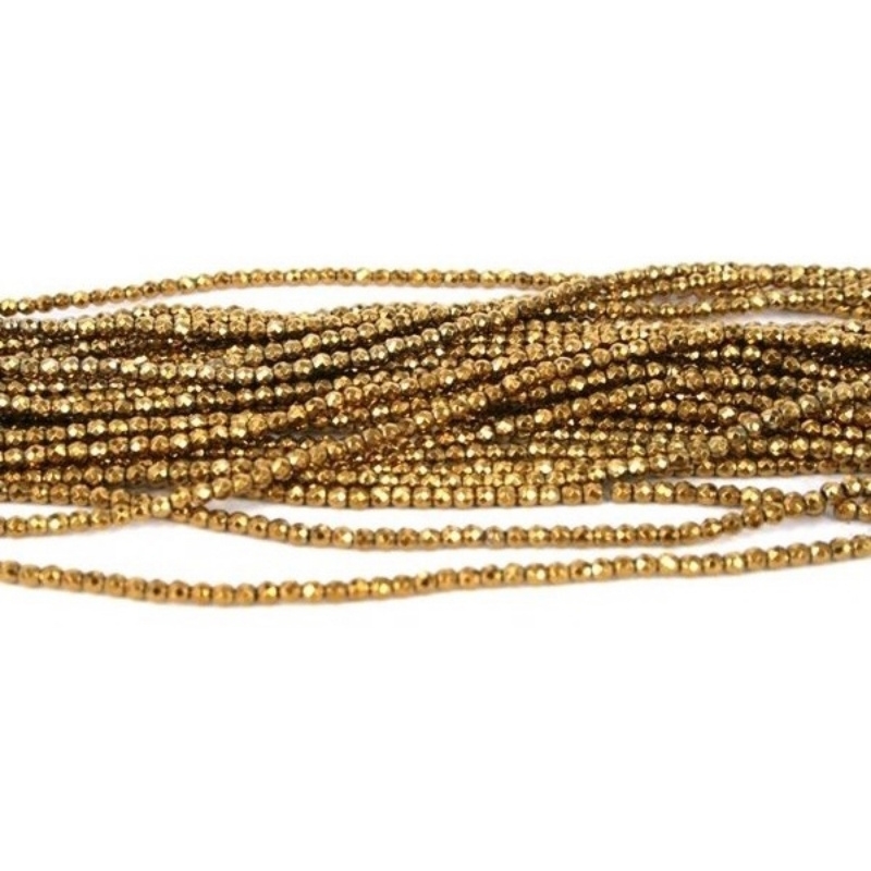 3 mm guldfarvede facetteret hæmatit perler – Hel streng