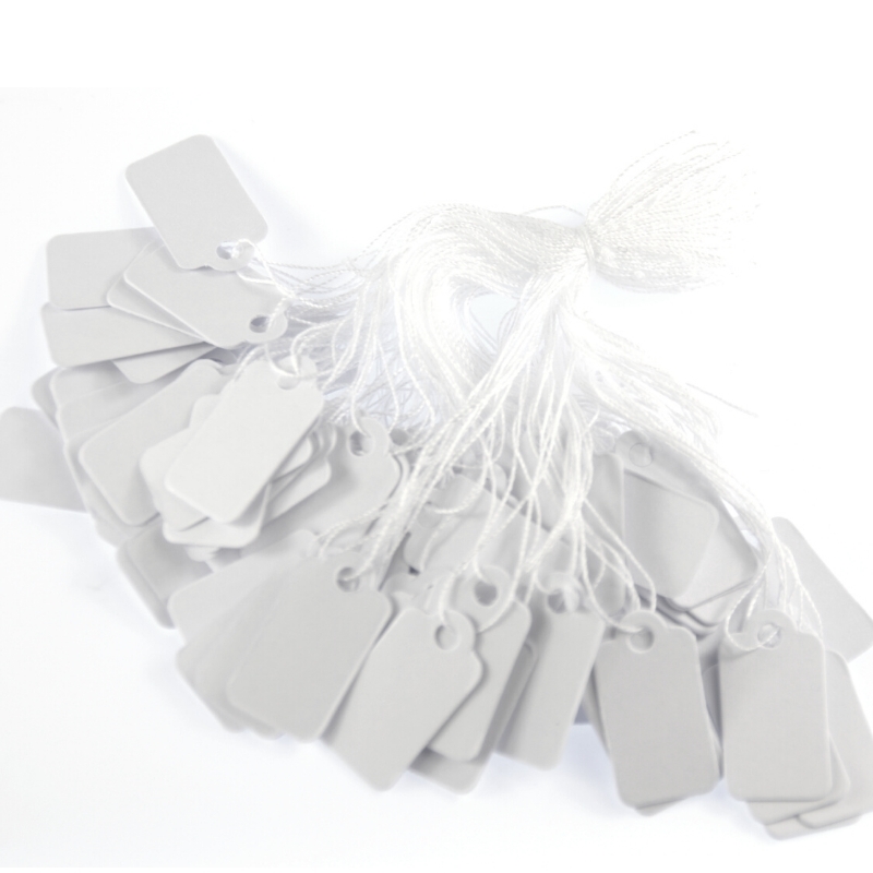 De her små prismærker er ret praktiske, når du har brug for at markere pris, størrelse eller noget andet. Hver etiket har en lille hvid snor, så de er lige til at binde fast på smykker, accessories eller håndlavede ting. Du kan skrive på dem med almindelig kuglepen, blyant eller tusch.